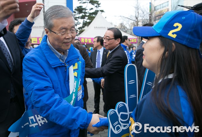 (안산=포커스뉴스) 20대 총선 공식선거 운동이 시작된 31일 오후 경기도 홈플러스 안산고잔점 앞에서 안산 집중유세를 마친 김종인 더불어민주당 비대위 대표 겸 선대위원장이 선거운동원들을 격려하고 있다.