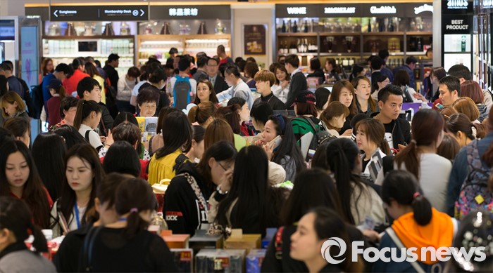 (서울=포커스뉴스) 31일 오후 서울 용산구 신라아이파크면세점을 찾은 중국 아오란 그룹 임직원들이 쇼핑을 하고 있다.