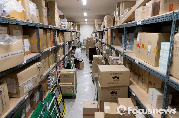 (서울=포커스뉴스) 중국 아오란 그룹 임직원들이 서울 용산구 신라아이파크면세점을 찾은 31일 오후 면세점 물류창고에 평소보다 많은 상품들이 쌓여있다.