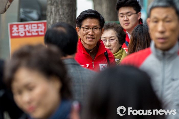 (대구=포커스뉴스) 새누리당 대구 수성구갑 김문수 후보가 31일 오후 대구 수성구 신매시장을 방문해 유권자들에게 한 표를 호소 하고 있다.