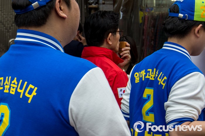 (대구=포커스뉴스) 새누리당 대구 수성구갑 김문수 후보가 31일 오후 대구 수성구 신매시장을 방문해 유권자들에게 한 표를 호소 하고 있다.