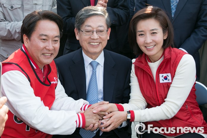 | △ 손 잡은 김황식·나경원·이성헌 |