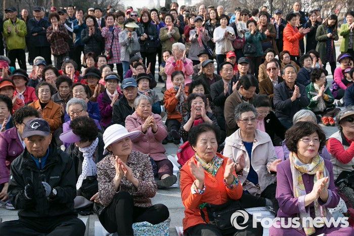 (서울=포커스뉴스) 4.13 총선 공식선거운동이 시작된 31일 오후 서울 서대문구 독립문공원에서 시민들이 이성헌 새누리당 서대문갑 후보의 출정식을 지켜보며 박수치고 있다.