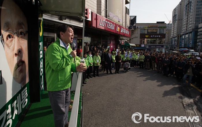 (서울=포커스뉴스) 총선 선거운동이 공식적으로 시작된 31일 오후 안철수 국민의당 상임공동대표가 서울 관악구 관악플라자 앞에서 김성식 관악갑 후보 지원 유세를 하고 있다.