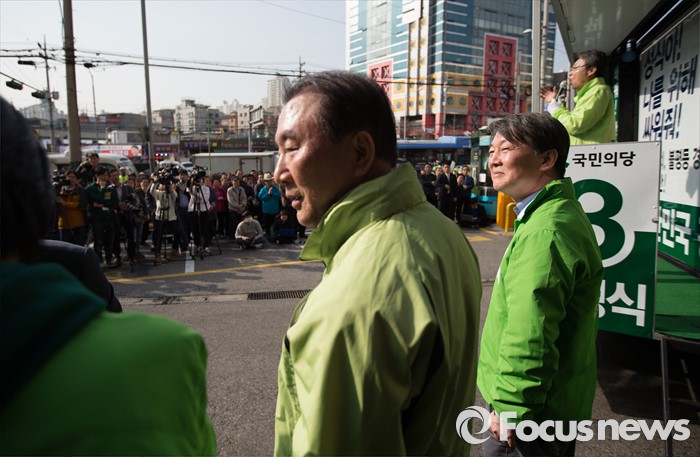 (서울=포커스뉴스) 총선 선거운동이 공식적으로 시작된 31일 오후 안철수 국민의당 상임공동대표가 서울 관악구 관악플라자 앞에서 김성식 관악갑 후보 지원 유세를 하고 있다.