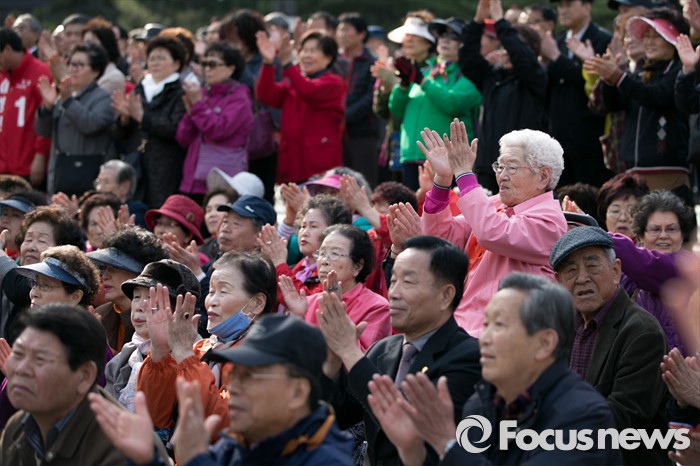 이날 오후 1시45분쯤에는 망원시장 안에 위치한 유명 닭강정 음식점 주인이 김 대표에게 닭강정을 건내며 "옥새라고 생각하고 이거하나 드십쇼"라고 말하는 해프닝이 벌어지기도 했다. 김 대표는 닭강정을 삼키고선 곧장 자리를 피했다.4.13 총선 공식선거운동이 시작된 31일 오후 서울 서대문구 독립문공원에서 시민들이 이성헌 새누리당 서대문갑 후보의 출정식을 지켜보며 박수치고 있다. 2016.03.31 박철중 기자