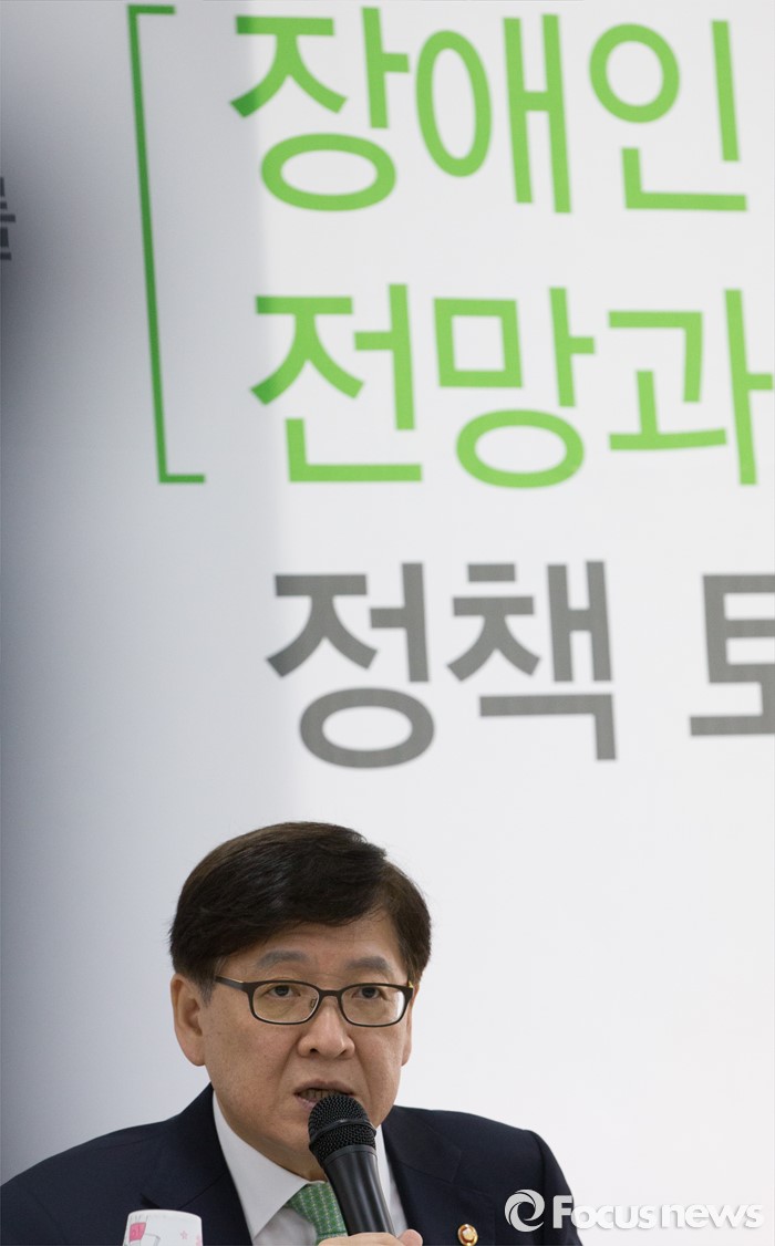 (세종=포커스뉴스) 정진엽 보건복지부장관이 1일 오전 세종시 종촌종합복지센터 대회의실에서 '장애인정책의 전망과 과제'라는 주제로 열린 정책 토론회에 참석해 인사말을 하고 있다.