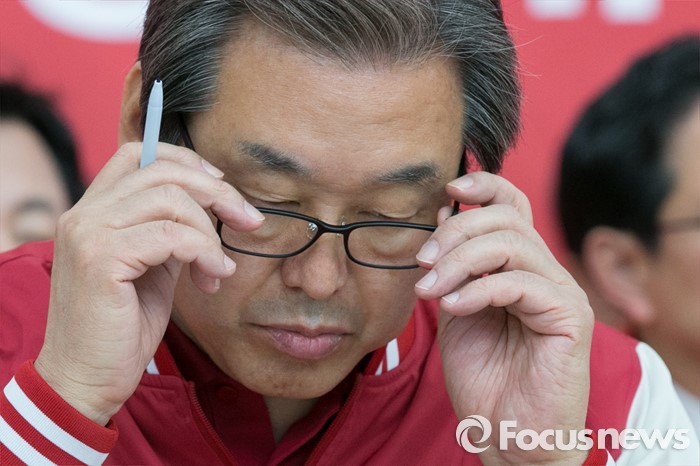(수원=포커스뉴스) 김무성 새누리당 대표가 1일 오전 경기도 수원시 장안구 정조로 새누리당 경기도당에서 열린 중앙선대위 회의에 참석해, 안경을 고쳐쓰고 있다.