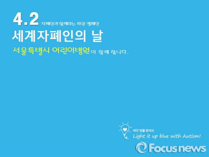 (서울=포커스뉴스) 서울 어린이병원은 2일 9회 세계 자폐인의 날을 맞아 자폐인에 대한 시민들의 이해를 높이고 조기진단과 치료를 유도하기 위한 행사를 진행한다고 1일 밝혔다.