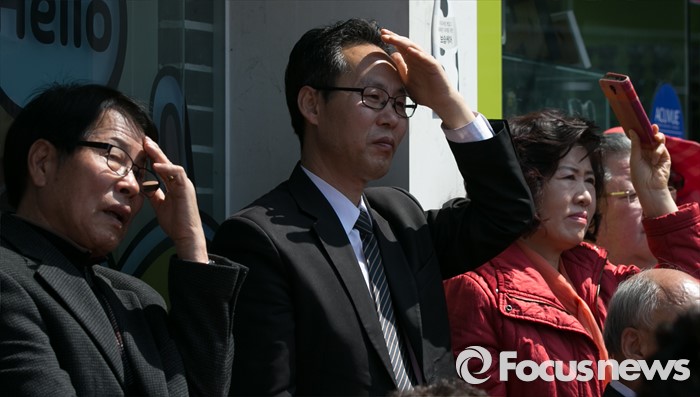 (수원=포커스뉴스) 1일 오전 경기도 수원시 팔달구 수원역 로데오거리 입구에서 시민들이 수원지역 후보자 합동 유세를 지켜보고 있다.