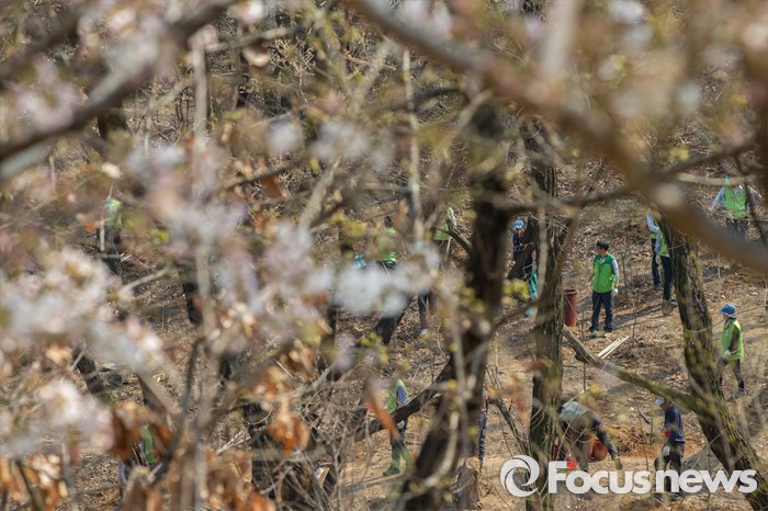 (서울=포커스뉴스) 1일 오후 서울 동대문구 배봉산에서 동대문구청 직원들이 식목일을 앞두고 나무를 심고 있다.