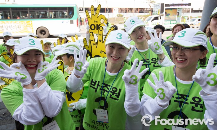 (안산=포커스뉴스) 국민의당 선거운동 봉사자들이 1일 오후 안산시 상록구 상록수역 월드프라자 앞에서 김영환 상록구을 후보와 박주원 상록구갑 후보 지원 유세를 하고 있다.