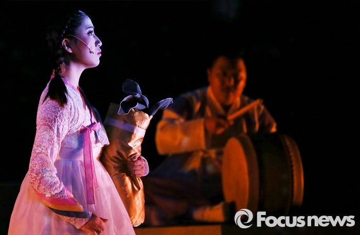 (서울=포커스뉴스) 1일 오후 서울 중구 정동극장에서 열린 2016 상설공연 '가온세상의 시작' 프레스콜 행사에 참여한 배우들이 주요 장면을 시연하고 있다.
