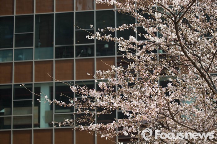 (서울=포커스뉴스) 완연한 봄 날씨를 보인 1일 오후 서울 광화문 일대에 벚꽃이 활짝 피어있다.