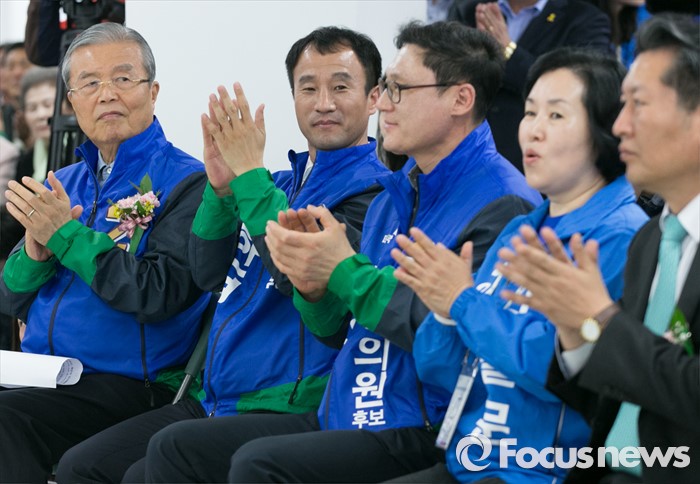 (익산=포커스뉴스) 김종인 더불어민주당 비대위 대표 겸 선대위원장 등 내빈들이 1일 오후 한병도 전북 익산을 후보 선거사무소에서 열린 개소식에 참석해 박수를 치고 있다. 왼쪽부터 김 대표, 한 후보, 최영규 도의원 후보, 강팔문 익산시장 후보 부인, 정청래 의원.