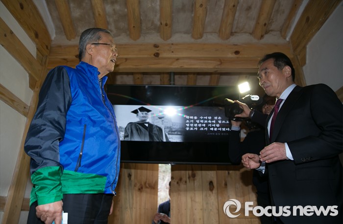 (순창=포커스뉴스) 김종인(왼쪽) 더불어민주당 비대위 대표 겸 선대위원장이 1일 오후 전북 순창군 가인 김병로 선생 생가를 방문해 관계자 설명을 들으며 내부를 둘러보고 있다.