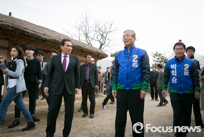 (순창=포커스뉴스) 김종인(가운데) 더불어민주당 비대위 대표 겸 선대위원장이 1일 오후 전북 순창군 가인 김병로 선생 생가를 방문해 박희승 남원·임실·순창 후보와 함께 둘러보고 있다.