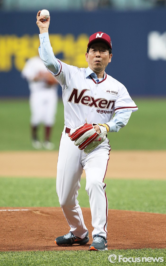(서울=포커스뉴스) 1일 오후 서울 구로구 고척스카이돔에서 열린 2016 타이어뱅크 프로야구 개막전 넥센 히어로즈와 롯데 자이언츠 경기에 앞서 박원순 서울시장이 시구하고 있다.