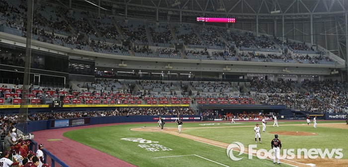 (서울=포커스뉴스) 1일 오후 서울 구로구 고척스카이돔에서 2016 타이어뱅크 프로야구 개막전 넥센 히어로즈와 롯데 자이언츠의 경기가 열리고 있다.