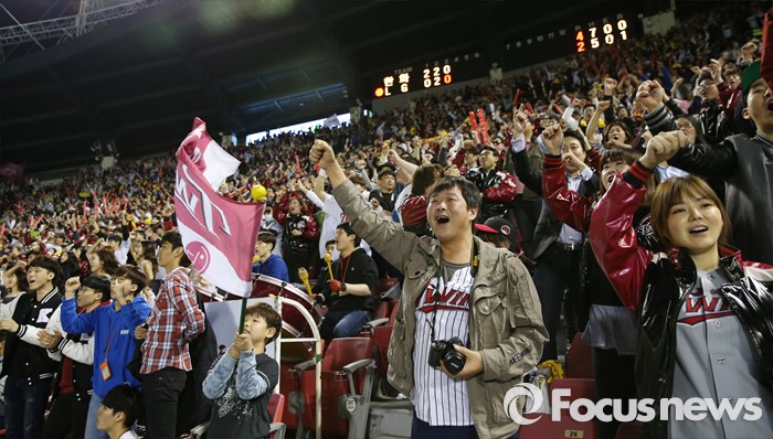 (서울=포커스뉴스) 1일 2016 프로야구 개막전 한화-LG 경기가 열린 서울 잠실구장엔 평일임에도 불구하고 팬들이 구장을 가득 메우고 포근한 밤하늘에 함성을 채우고 있다.