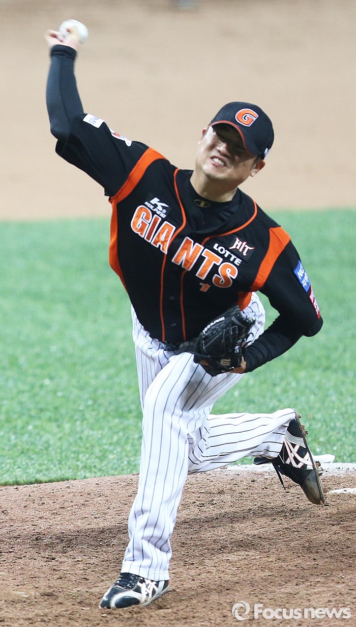 (서울=포커스뉴스) 1일 오후 서울 구로구 고척스카이돔에서 열린 2016 타이어뱅크 프로야구 개막전 넥센 히어로즈와 롯데 자이언츠의 경기 9회말 롯데 마무리 투수 손승락이 투구하고 있다.