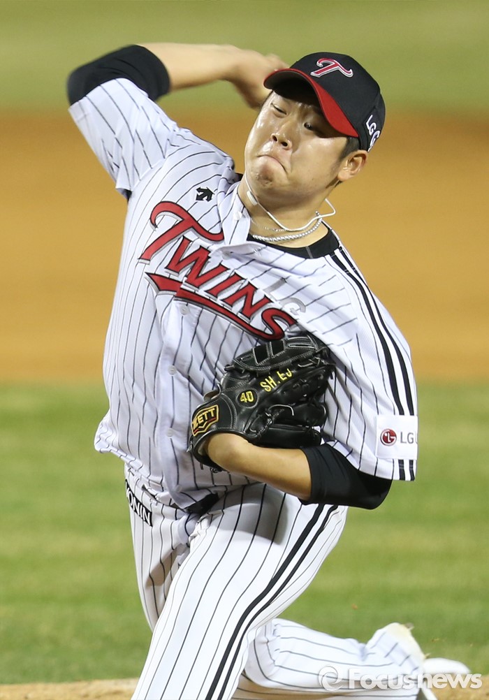 (서울=포커스뉴스) 1일 서울 잠실구장에서 열린 2016프로야구 개막전 한화-LG 경기에서 LG 투수 이승현이 투구하고 있다.