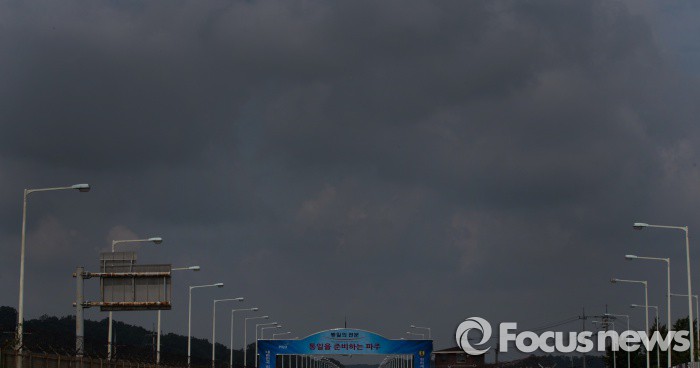 기상청은 "당분간 기온은 평년보다 높겠으나 일교차가 10도 이상으로 크겠으니, 건강관리에 유의하기 바란다"고 말했다.(파주=포커스뉴스) 북한 포격 도발로 전국에 긴장감이 싸인 21일 오전 경기 파주시 통일대교 위로 먹구름이 짙게 드리워 있다. 2015.08.21 양지웅 기자