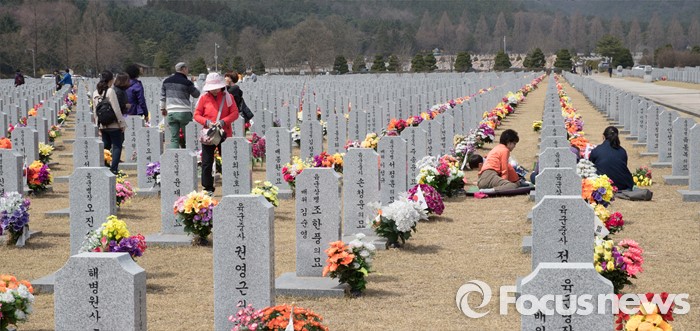 (대전=포커스뉴스) 추석과 함께 민족 4대 명절 중 하나인 한식을 사흘 앞둔 2일 오후 대전 유성구 국립대전현충원에서 시민들이 성묘를 하고 있다.