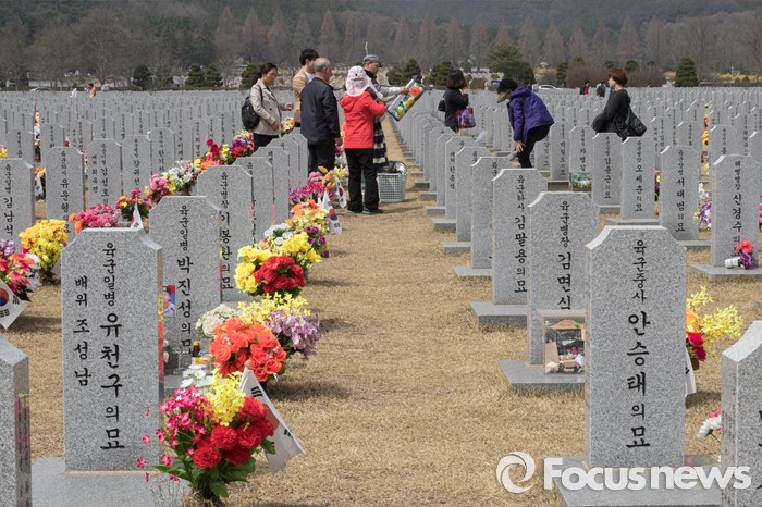 (대전=포커스뉴스) 추석과 함께 민족 4대 명절 중 하나인 한식을 사흘 앞둔 2일 오후 대전 유성구 국립대전현충원에서 시민들이 성묘를 하고 있다.