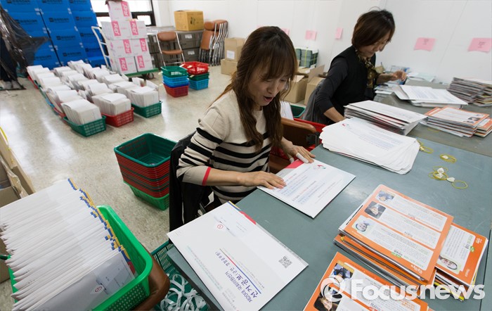 (서울=포커스뉴스) 2일 오후 서울 성북구 선거관리위원회에서 관계자들이 가정으로 발송될 제20대 국회의원 선거 공보물을 정리하고 있다.