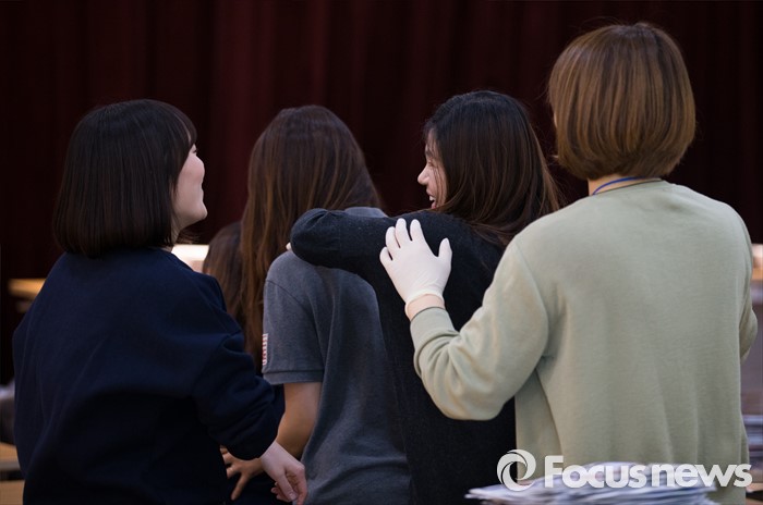 (서울=포커스뉴스) 2일 오후 서울 성북구 안암동주민센터에서 가정으로 발송될 제20대 국회의원 선거 공보물을 정리하던 관계자들이 휴식시간을 이용해 서로의 어깨를 주물러 주고 있다.