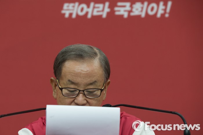 (서울=포커스뉴스) 강봉균 새누리당 공동선대위원장이 3일 오전 서울 영등포구 새누리당 당사에서 경제정책 3·4호 공약을 설명하고 있다.