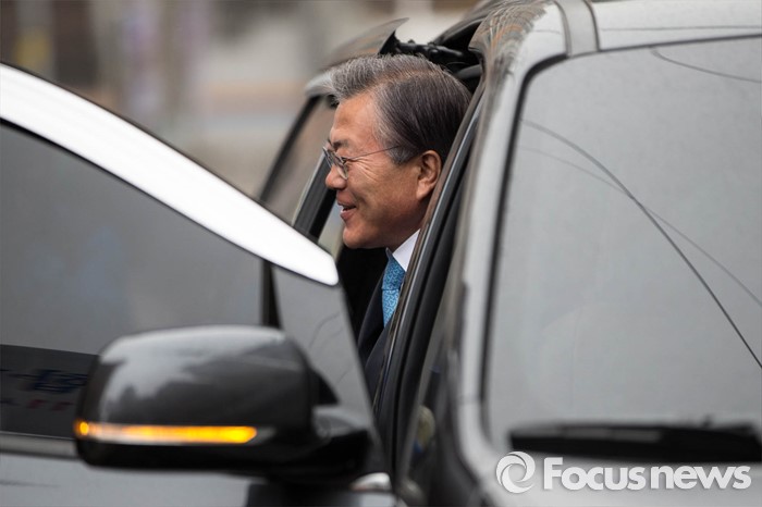 (서울=포커스뉴스) 선거운동이 시작되고 첫 주말을 맞은 3일 오전 문재인 전 더불어민주당 대표가 서울 동작구 신대방성당을 찾아 김병기 더민주 동작갑 후보를 바라보며 미소짓고 있다.