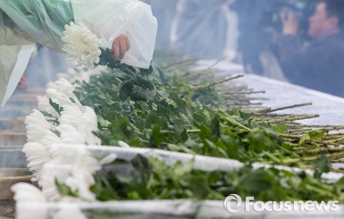 (제주=포커스뉴스) 3일 오전 제주 4ㆍ3 평화공원에서 열린 제68주년 4ㆍ3희생자 추념식에 참석한 시민들이 헌화하고 있다.