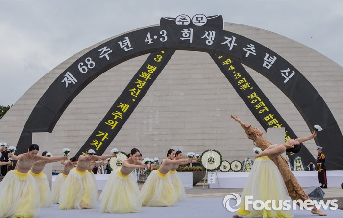 (제주=포커스뉴스) 3일 오전 제주 4ㆍ3 평화공원에서 열린 제68주년 4ㆍ3희생자 추념식에서 무용단이 추모공연을 펼치고 있다.