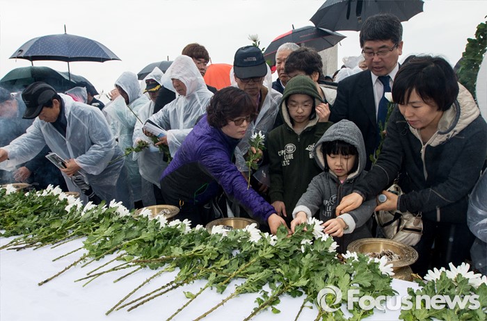 (제주=포커스뉴스) 3일 오전 제주 4ㆍ3 평화공원에서 열린 제68주년 4ㆍ3희생자 추념식에 참석한 시민들이 헌화하고 있다.