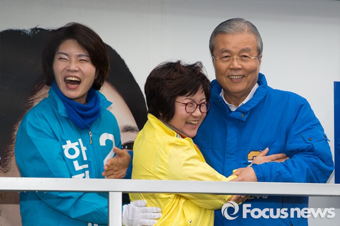 (서울=포커스뉴스) 3일 오후 서울 강서구 화곡역 사거리에서 김종인 더불어민주당 비대위 대표 겸 선대위원장이 강서갑 금태섭, 강서병 한정애 후보와 함께 유세를 하고 있다.