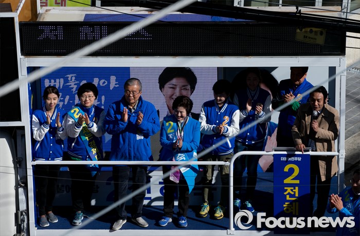 | △ 전혜숙 후보 유세차량 오른 김종인 |