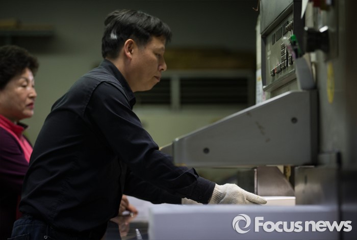 (서울=포커스뉴스) 제20대 국회의원 선거를 9일 앞둔 4일 오후 서울 영등포구 한 인쇄소에서 직원들이 인쇄된 투표용지를 제단하고 있다.