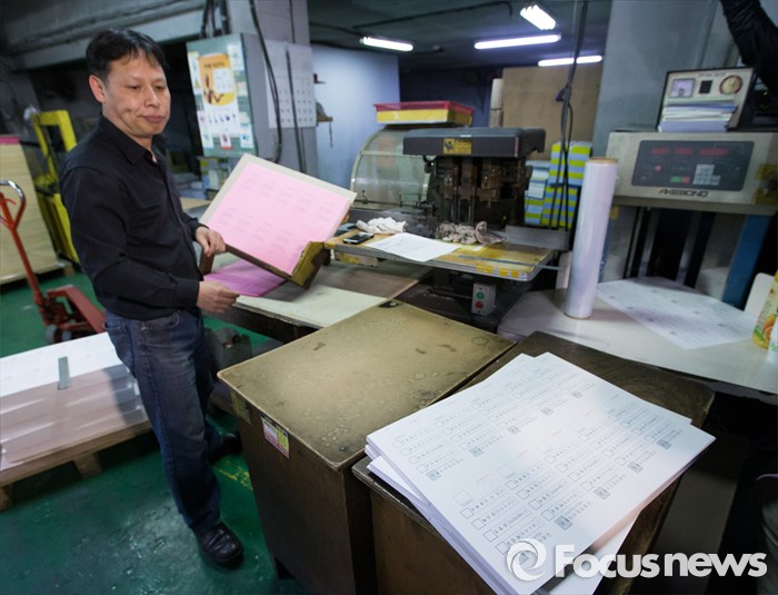 (서울=포커스뉴스) 제20대 국회의원 선거를 9일 앞둔 4일 오후 서울 영등포구 한 인쇄소에서 직원이 투표용지 인쇄 작업을 하고 있다.