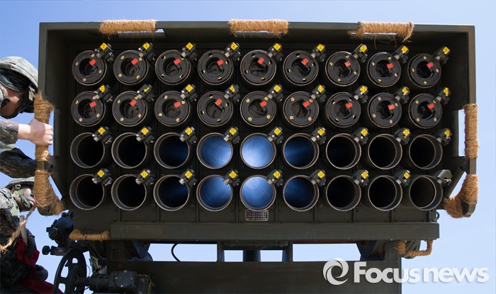 (고성=포커스뉴스) 4일 오후 강원도 고성 송지호해변에서 열린 '2016년 전반기 해상사격 훈련'에서 육군 8군단 포병대대 소속 장병들이 130mm 다련장 구룡의 발사를 준비하고 있다.