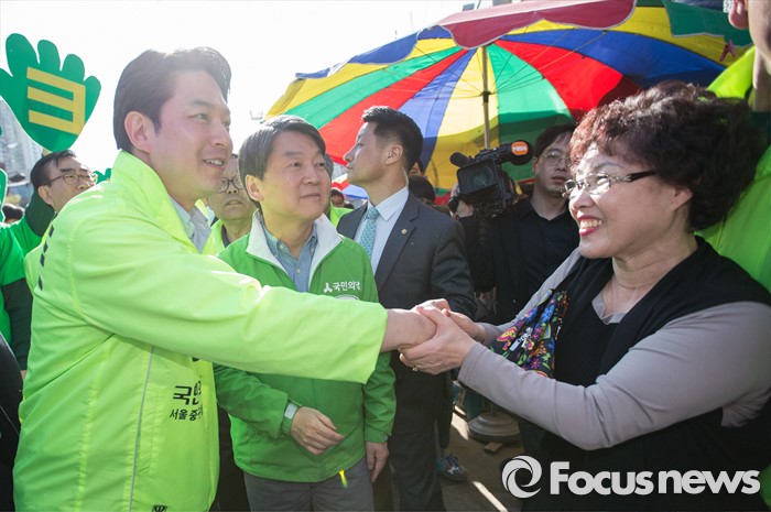 (서울=포커스뉴스) 정호준 국민의당 성동구을 후보가 4일 오후 서울 성동구 금남시장 로터리에서 선거 유세를 하고 있다.