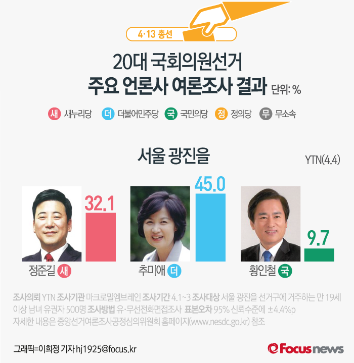 | △ [그래픽] 4·13총선 서울 광진을 여론조사결과 |