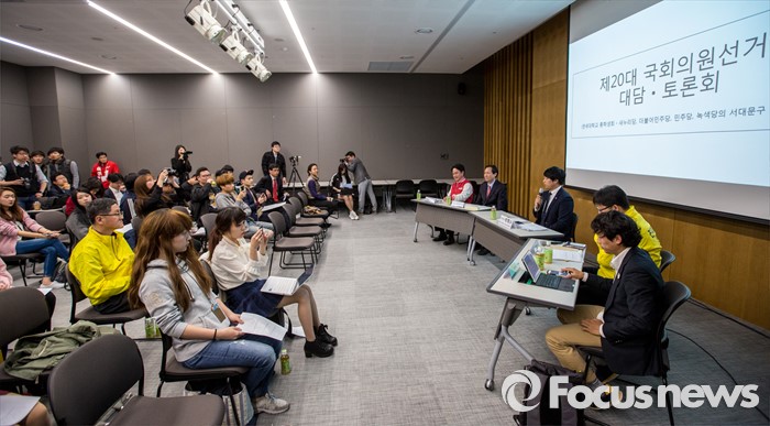 (서울=포커스뉴스) 4일 오후 서울 서대문구 연세대학교에서 '제20대 국회의원 선거 서대문갑 후보자 토론회'가 열리고 있다.