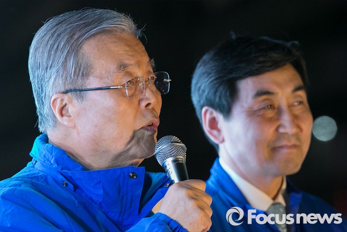 (안양=포커스뉴스) 4일 오후 경기도 지하철 1호선 안양역 앞 광장에 김종인(왼쪽) 더불어민주당 비대위 대표 겸 선대위원장이 안양 만안구 후보인 이종걸 원내대표의 지원유세에 나서 지지를 호소하고 있다.