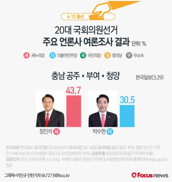 | △ [그래픽] 4.13총선 충남 공주, 부여, 청양, 여론조사 결과 |