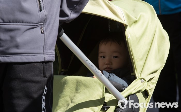 (대전=포커스뉴스) 5일 오전 대전 서구 한민시장 일원에서 어린이가 김무성 새누리당 대표 최고위원의 지지호소를 듣고 있다.