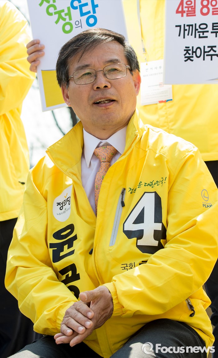 (서울=포커스뉴스) 5일 오전 서울 종로구 성균관대학교 정문 앞에서 윤공규 정의당 종로구 후보가 대학생들과 간담회를 하고 있다.