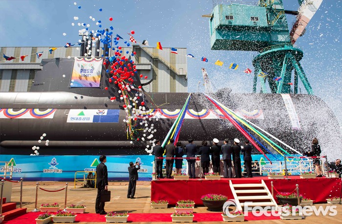 (서울=포커스뉴스) 5일 울산 동구 현대중공업 본사에서 해군의 214급(1,800톤급) 잠수함인 '홍범도함'의 진수식이 열리고 있다. <사진제공=해군>