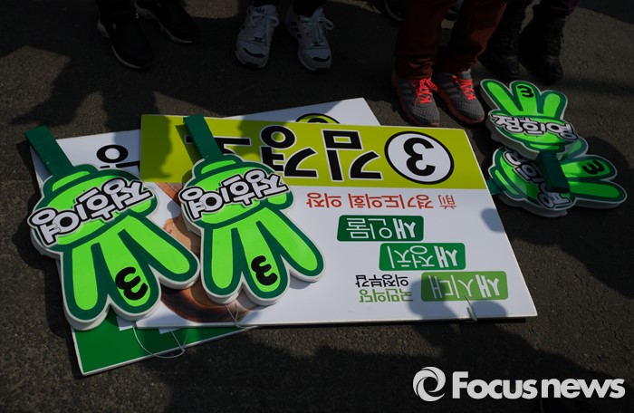 | △ 바닥에 놓인 국민의당 선거 피켓들 |